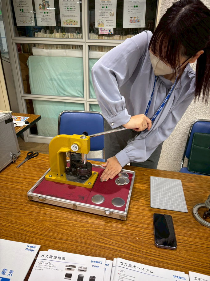 今回初の出し物、大阪ガスさんの「缶バッチ」作りが好評でした!